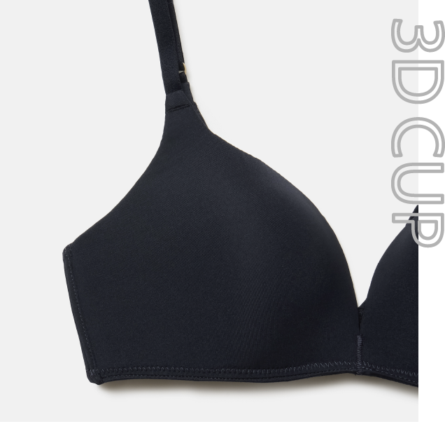 3D設計の立体的なモールドカップでバストを優しくホールド。